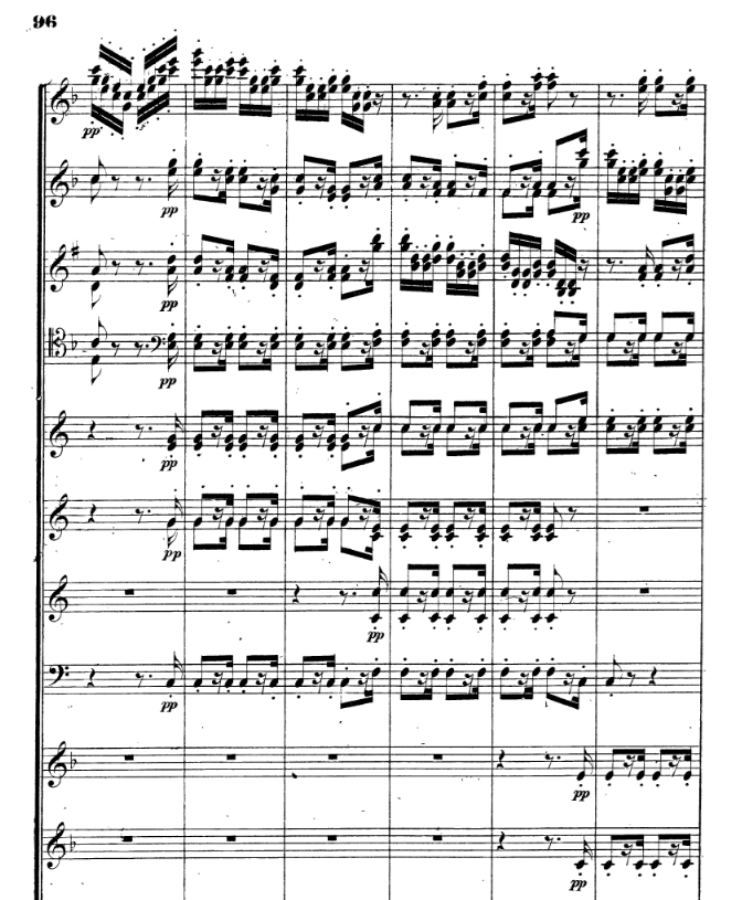El manuscrito es claro: el timbal, y solo el timbal, comienza tocando una corchea en lugar de la semicorchea que tocan los demás instrumentos.