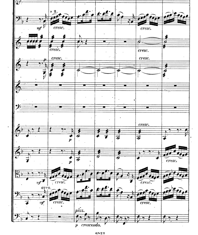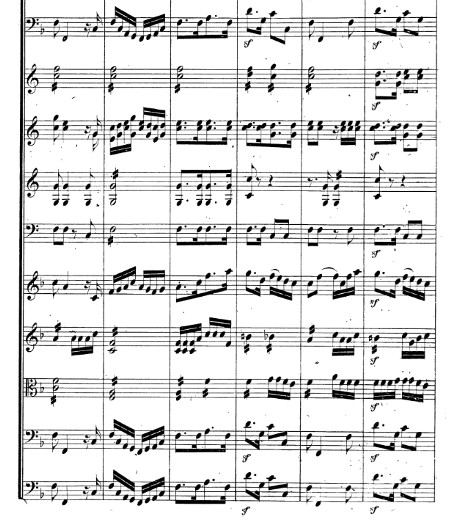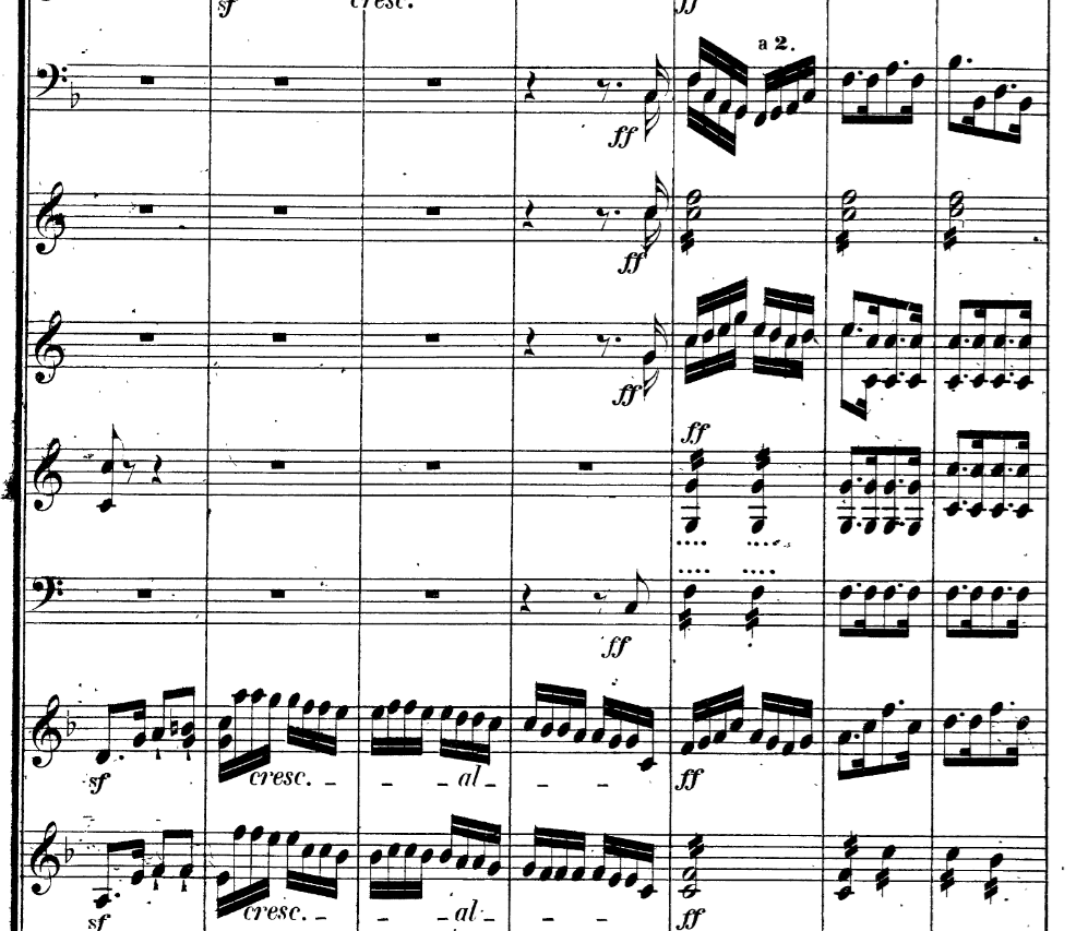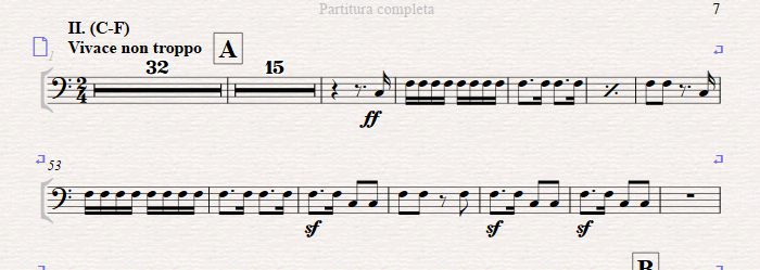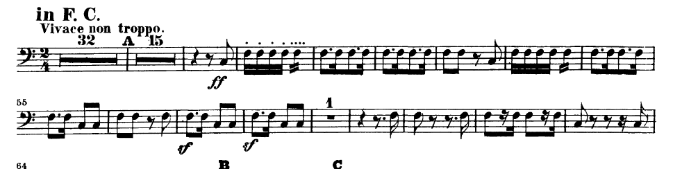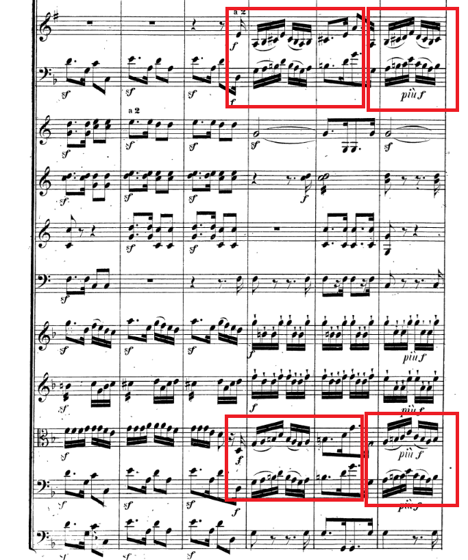 La parte de timbales es maravillosa, pero tiene detalles que hacen que podamos ver determinados pasajes como “errores” que no acaban de encajar con el resto de la orquesta. Me refiero, concretamente, a la primera intervención del 2º movimiento (Vivace non troppo), donde tocamos el tema con los fagotes, trompas, violines I, chelos y contrabajos: